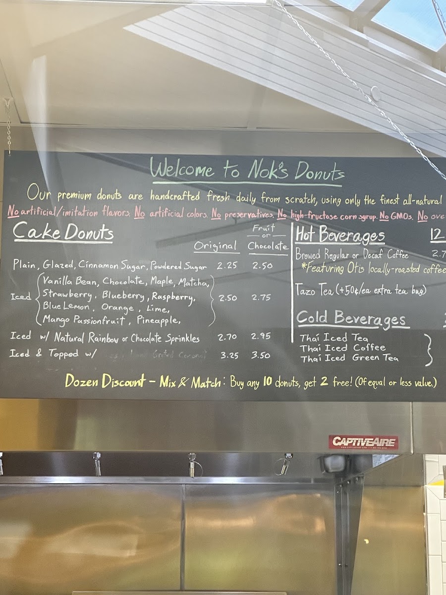 The menu at Nok's Donuts offers a delightful variety of sweet treats and savory options, ensuring that there's something for everyone. One of the standout items is the Dozen Donuts, perfect for sharing or indulging in a wide range of flavors all at once. For those who enjoy classic donuts, the Doughnut is a must-try, with its soft, fluffy texture that melts in your mouth. Another fan favorite is the Raspberry Donut, featuring a sweet and tangy raspberry filling that adds a refreshing twist.